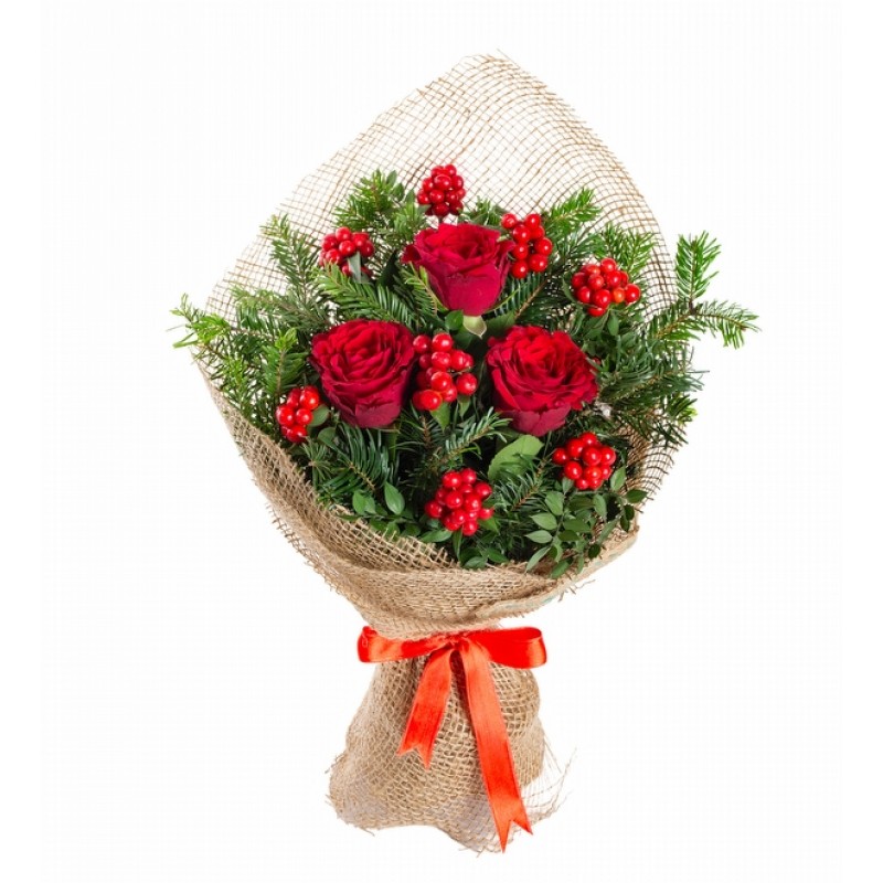 Kırmızı meyveleri ve yeşil yapraklarıyla dikkat çeken bu zarif buket,